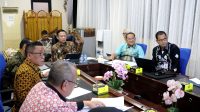 Journalis, Bandar Lampung (Pemprov) : Gubernur Lampung Arinal Djunaidi bersama Forkopimda Provinsi Lampung mengikuti Upacara HUT TNI ke-75 secara virtual meeting, di Aula A. Yani Makorem 043/Garuda Hitam, Bandarlampung, Senin (5/10/2020).