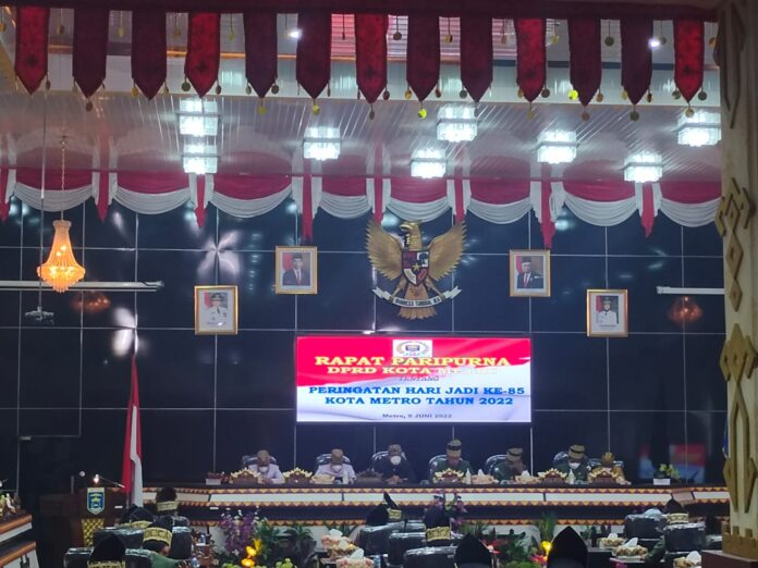 Kota Metro – Dewan Perwakilan Rakyat Daerah (DPRD) Kota Metro melontarkan intrupsi saat rapat paripurna Hari Ulang Tahun (HUT) Kota Metro ke-85 baru dimulai di gedung dewan setempat, Kamis (9/6/2022).