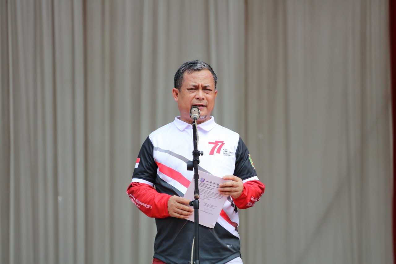 BANDARLAMPUNG —— Gubernur Lampung Arinal Djunaidi, melalui Asisten Administrasi Umum Senen Mustakim, membuka perlombaan tradisional dalam rangka memeriahkan Hari Ulang Tahun ke- 77 Kemerdekaan Republik Indonesia di Provinsi Lampung, di Lapangan Korpri, Komplek Kantor Gubernur Lampung, Jumat (19/8/2022).