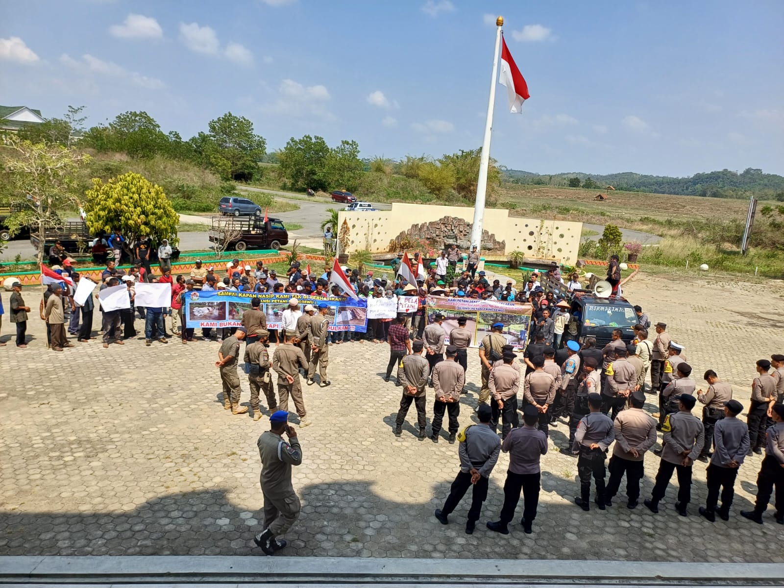 Pringsewu : Petani Kecamatan Pagelaran Kabupaten Pringsewu Lampung yang mengatas namakan Aliansi Petani Pringsewu melakukan aksi demo di gedung DPRD Kabupaten Pringsewu, diarea kantor Pemkab setempat pada Kamis, 16/11/2023.