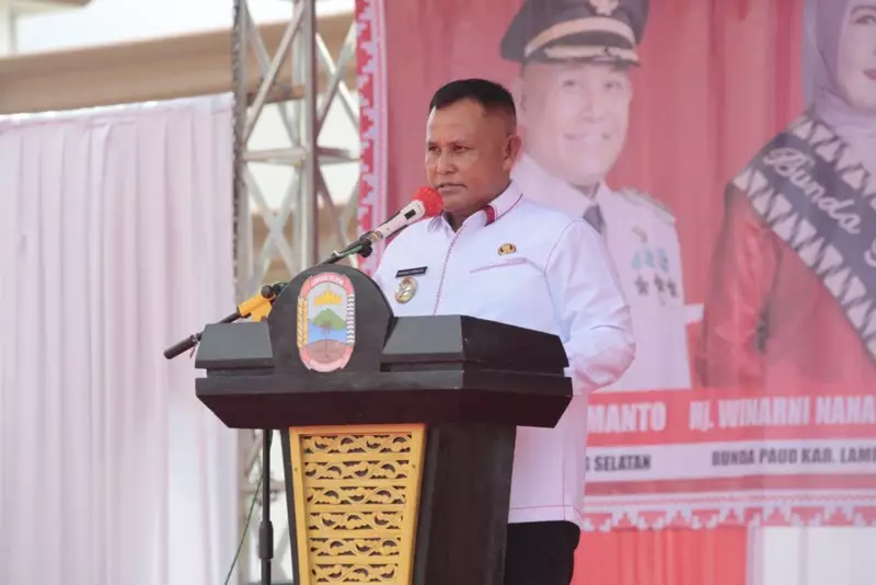 Tanjung Bintang – Bupati Lampung Selatan H. Nanang Ermanto bersama Bunda PAUD Lampung Selatan Hj. Winarni menghadiri Gebyar Bunda PAUD Tahun 2023 di Lapangan Dusun Karang Asem, Desa Serdang, Kecamatan Tanjung Bintang, pada Rabu (20/12/2023).