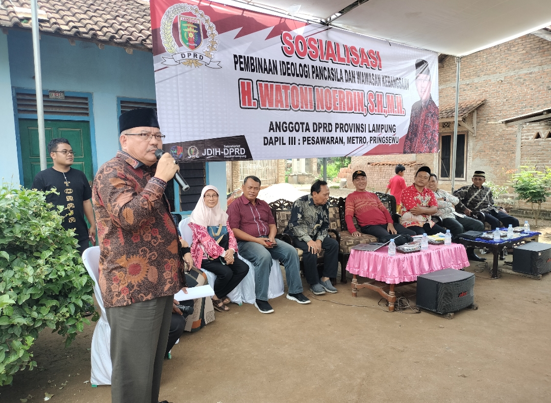 Pringsewu — ‘Di 14 Februari 2024, kita akan menghadapi pesta demokrasi secara serentak, untuk memilih wakil rakyat dan pemimpin bangsa. Disini, menjadi pembuktian bahwa Nilai-nilai Pancasila itu wajib diterapkan. Jangan karena beda pilihan, terjadi perselisihan antar keluarga, tetangga dan lingkungan’, demikian disampaikan Anggota DPRD Provinsi Lampung, Watoni Noerdin, di hadapan warga Pekon Jati Agung, Kecamatan Ambarawa Kabupaten Pringsewu. Minggu (04/02/2024).