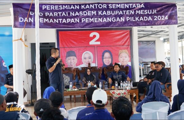 “Seluruh kader Partai NasDem, mulai dari pengurus DPD, Ranting, anak ranting, dan sayap partai. Wajib bekerja keras, kompak memenangkan Paslon No 2, Elviana – Yugi di Pilkada November 2024,” kata Ketua DPD Partai NasDem Kabupaten Mesuji, Budi Yuhanda. Saat meresmikan kantor sementara DPD Partai NasDem. Senin (30/09/2024).
