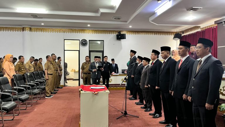 ” Ucapan sumpah itu tidak hanya sebatas simbolik dan ritual belaka saat dilantik, lebih dari itu sumpah memiliki makna yang sangat dalam, sumpah pertanggungjawabannya tidak hanya kepada manusia tetapi kepada Allah. ” tegas Pj. Bupati.