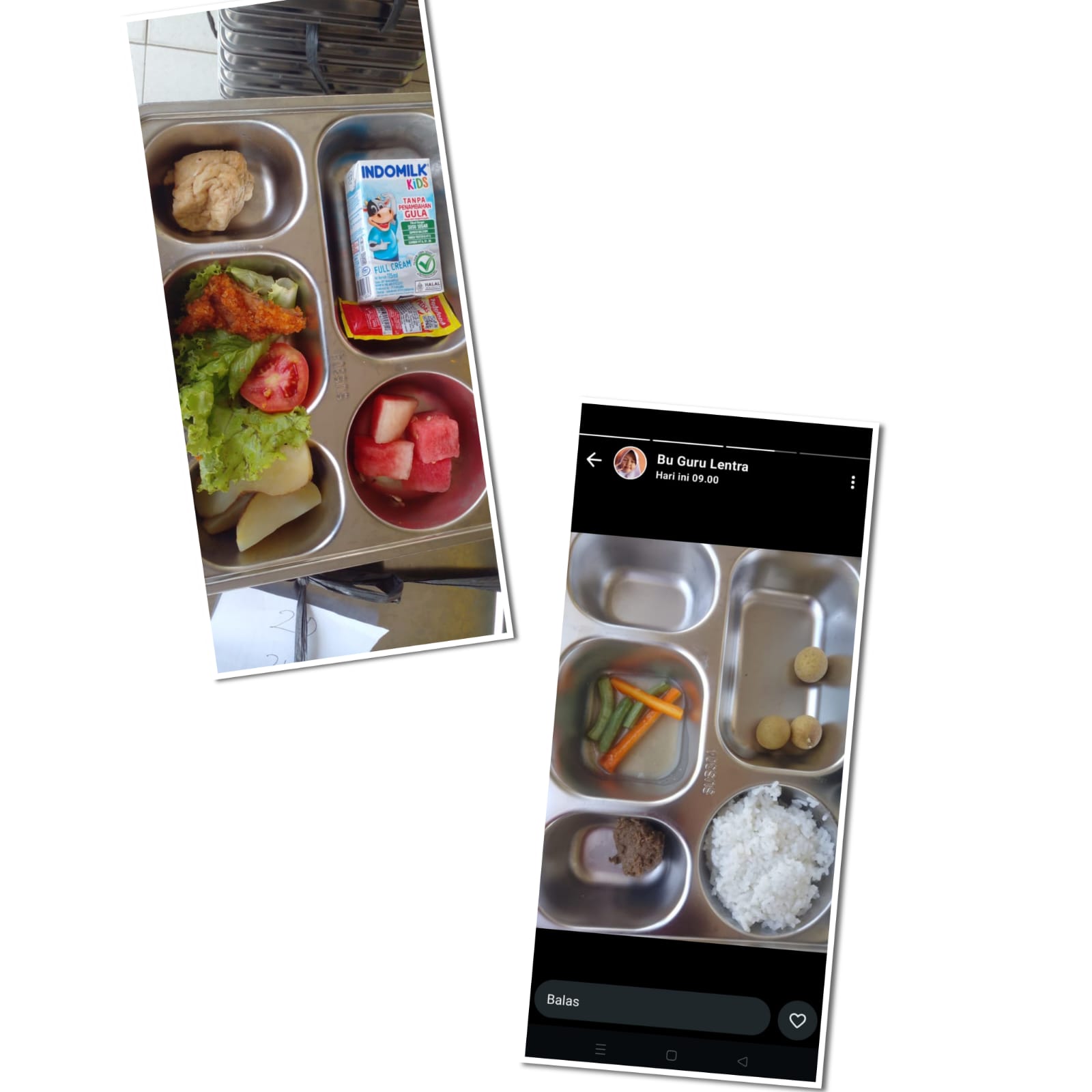 Sementara pada hari selasa menyajikan menu yang terlihat pada omprengan tidak menggunakan nasi diganti kentang rebus, potongan buah semangka, lalapan sawi daging ayam pilet, tahu, susu kotak saus kecil, terkedalanya sajian ini karena anak-anak disekolah tidak terbiasa makan kentang, sehingga banyak yang tidak dimakan.