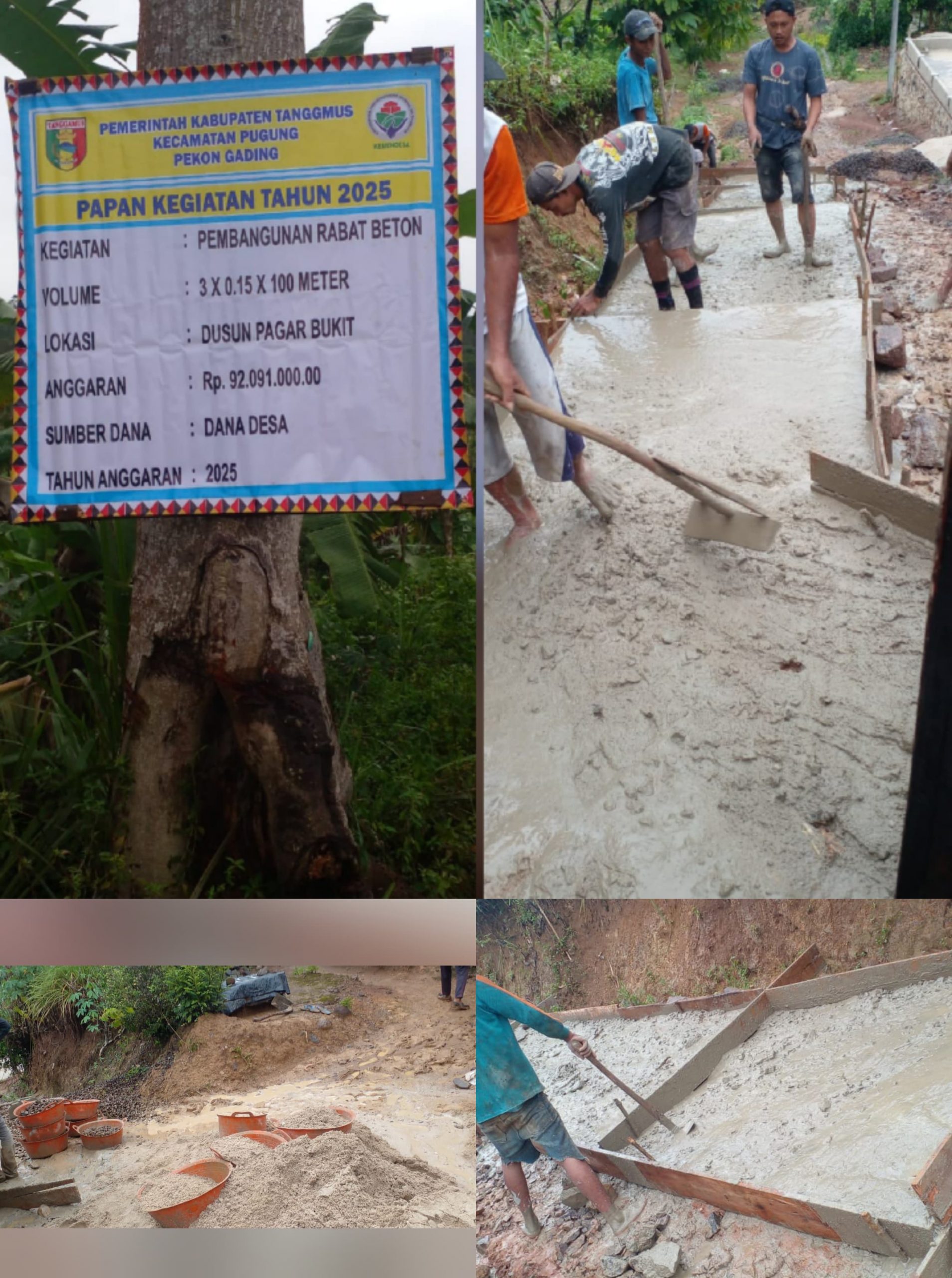 Pembangunan rabat beton lebar jalan ukuran 3meter, ketebalan 15cm panjang jalan sekitar 100meter, menggunakan anggaran Rp.92juta, diyakini sumber pembangunan jalan rabat beton ini kebesaran, dimana ditengarai anggaran tersebut telah disengaja dimark-up oleh kakon Gading.