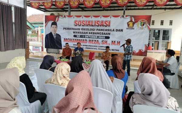 Pringsewu – Pemerintah Pekon Ambarawa Timur, Kecamatan Ambarawa, Kabupaten Pringsewu, memberikan apresiasi atas terselenggaranya Sosialisasi Pembinaan Ideologi Pancasila dan Wawasan Kebangsaan yang diinisiasi oleh Anggota DPRD Provinsi Lampung, Muhammad Reza, pada Sabtu (11/10/2025).